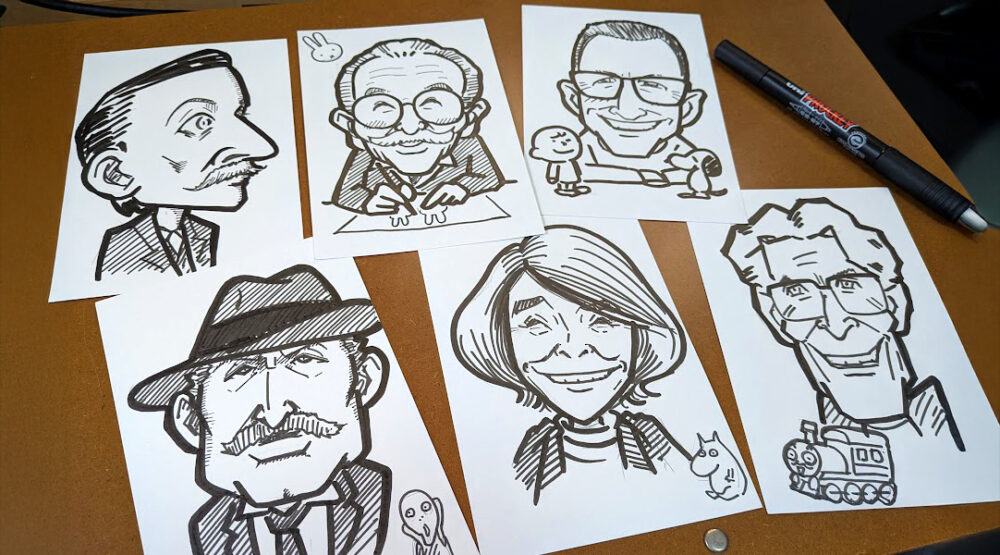 ライフワークとして似顔絵師としても活動しており、2015年からイラストの技法を使った研修やセミナーを開始。
