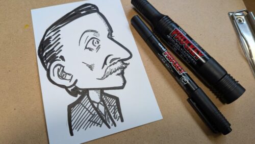 ライフワークとして似顔絵師としても活動しており、2015年からイラストの技法を使った研修やセミナーを開始。