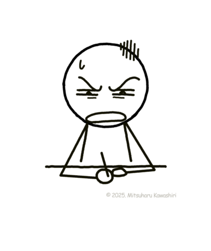 「机に向かって座っている棒人間」