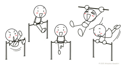 棒人間が、鉄棒している