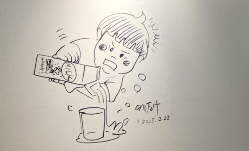 牛乳をこぼす、